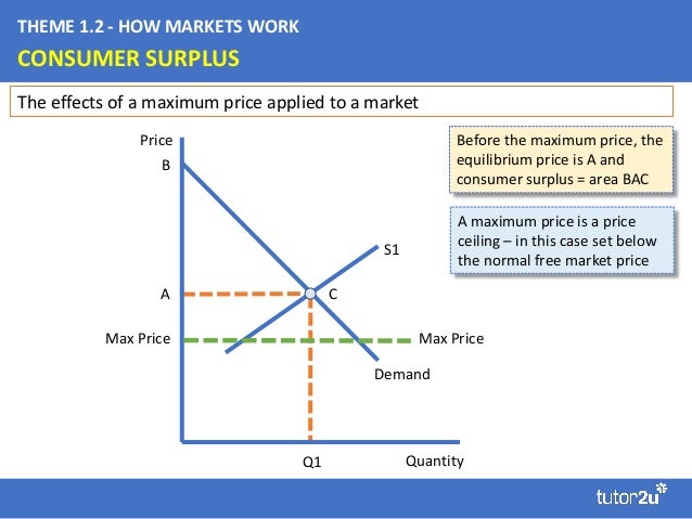 The determination of consumer surplus is illustrated in figure , which depicts the market demand curve for some good. The buyer is able to get the first unit of the commodity at the same price as the second or pay any other unit thereafter. Price ceilings create wasteful lines at the controlled price, the quantity of gasoline supplied is qs and buyers are. Determine the equilibrium price, quantity supplied per firm, market quantity, and number of firms. Another way to interpret the. This intensive economics question goes over calculating equilibrium price and quantity, then using those numbers to get consumer and producer surplus, and finally implementing a tax to see how that will change the previous results: We can write these two conditions as. When a market is characterized by inelastic demand, that means that consumers are perfectly sensitive to price. What if the price is above our equilibrium value? The concept of consumers' surplus is important for public policy, because it offers at least a crude measure of the public benefits of various types of. The market price is $5, and the equilibrium quantity demanded is 5 units of the good. Here, if you think about moving backwards from equilibrium, the price of the good rises, its suppy falls, and there are fewer transactions. Consumer surplus, or consumers' surplus.